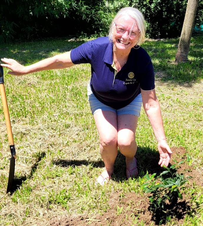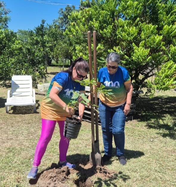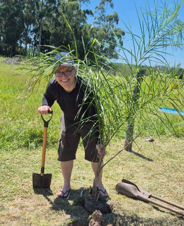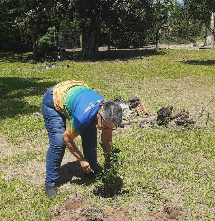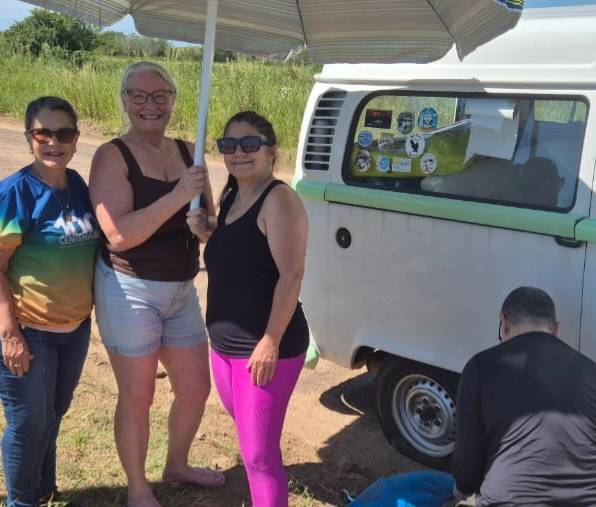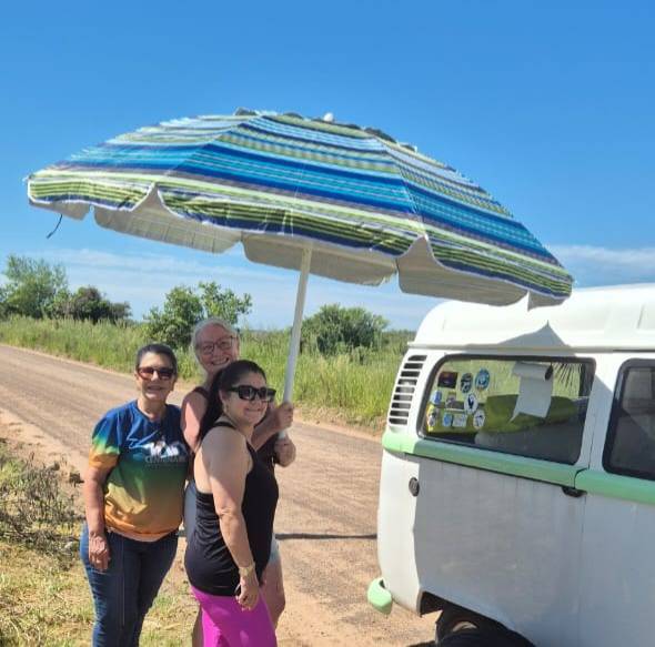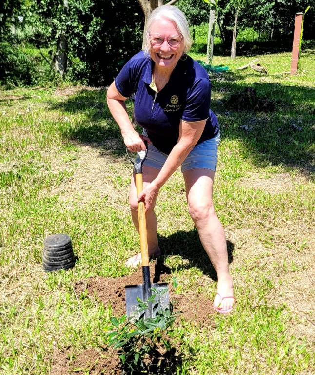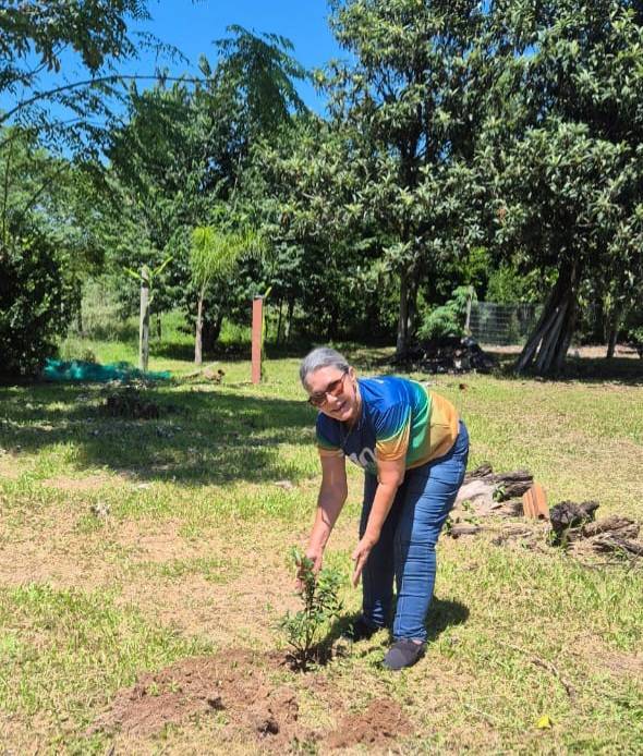 Na manhã de terça-feira de carnaval, 17 de fevereiro de 2026, rotarianos plantaram cinco mudas de árvores em sítio localizado em Terra de Areia, no Litoral Norte do Rio Grande do Sul. Coordenados pela presidente do clube, Ana Souza, os companheiros Iuri Gavronski, Nara Maria Müller, Cleusa Fernandes e Isabel Faggion plantaram mudas de laranjeiras, palmeiras e um Ipê Amarelo. Além de realizarem uma importante ação em prol do meio ambiente, o grupo também praticou o companheirismo, uma vez que a viagem até o sítio foi realizada com a Kombi Cigana, também conhecida como Sandra Rosa Madalena. De propriedade dos companheiros Iuri e Nara, a Kombi Cigana é utilizada para viagens e pequenos passeios do casal. Desta vez, a kombi teve a missão de transportar as cinco mudas de árvores que foram plantadas no sítio em Terra de Areia. No trajeto, um imprevisto atrasou a ação: um dos pneus da kombi furou e o companheiro Iuri, pacientemente o trocou. Ao final, tudo se transformou em companheirismo e senso de missão cumprida. Histórias para contarmos às futuras gerações.